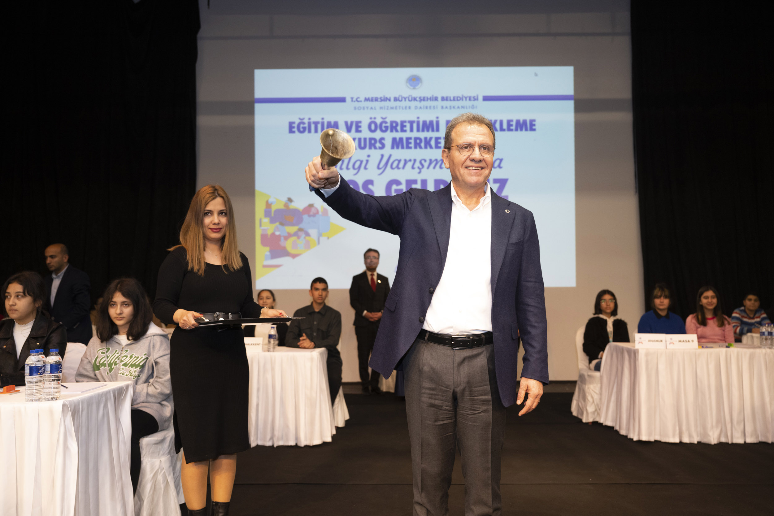 Mersin Büyükşehir Belediye Başkanı Vahap Seçer, Büyükşehir Belediyesi Eğitim ve Öğretimi Destekleme Kurs Merkezleri’nde eğitim gören LGS öğrencilerine yönelik düzenlenen Bilgi Yarışması’na katıldı. Kongre ve Sergi Sarayı’nda düzenlenen yarışmada Başkan Seçer, öğrencilerin büyük coşkusu ile karşılandı. Etkinlikte Başkan Seçer, kura çekimi ile masaları belirledi, ardından da yarışmacılara tek tek başarılar dileyerek başlangıç zilini çaldı ve Bilgi Yarışması’nı başlattı. Yüzlerce öğrencinin izlediği ve 14 kurs merkezinden 42 yarışmacının katıldığı yarışmanın birincisi Eski Ömerli Şubesi oldu.