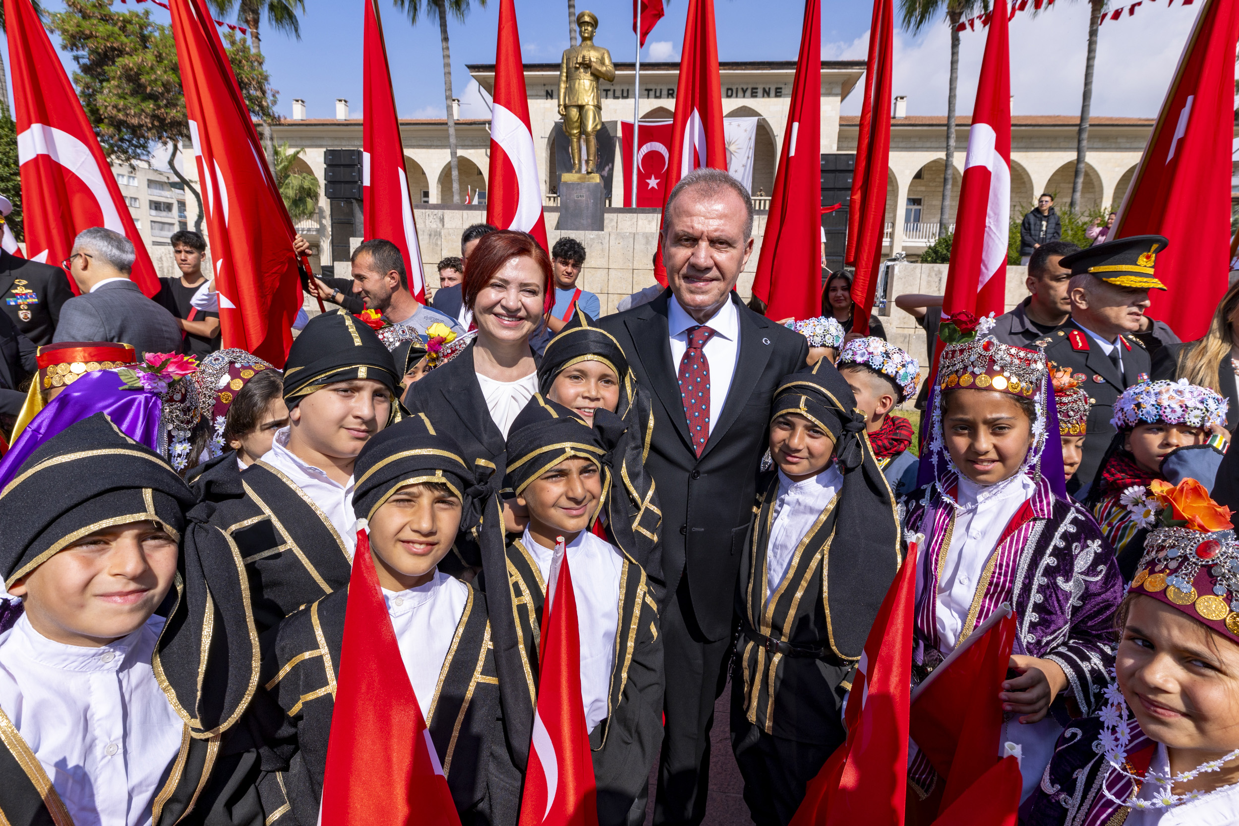 Törene; Başkan Vahap Seçer ve Meral Seçer’in yanı sıra; Mersin Valisi Atilla Toros ve eşi Dudu İrem Toros, Akdeniz Bölge ve Garnizon Komutanı Tuğamiral Soner Kazankaya, kent protokolü ile çok sayıda vatandaş ve çocuklar katıldı. Saygı duruşu ve İstiklal Marşı’nın okunmasıyla başlayan törende ilk olarak İl Milli Eğitim Müdürü Muhammed Özdemirci günün anlam ve önemine ilişkin bir konuşma gerçekleştirdi. İl genelinde düzenlenen resim, şiir ve kompozisyon yarışmalarında dereceye giren öğrencilere ödüllerinin verilmesiyle devam eden tören, öğrencilerin bayrak gösterisi ve şiirlerin okunmasıyla sona erdi. Törenin tamamlanmasının ardından çocuklarla bir araya gelen Başkan Seçer ile Meral Seçer, kent protokolü eşliğinde toplu fotoğraf çekimine katıldı.
